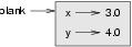 The variable blank refers to a Point object, which contains two attributes. Each attribute refers to a floating-point number.