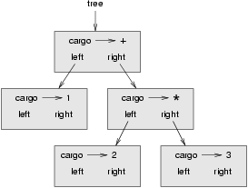 >>> tree = Tree('+', Tree(1), Tree('*', Tree(2), Tree(3)))